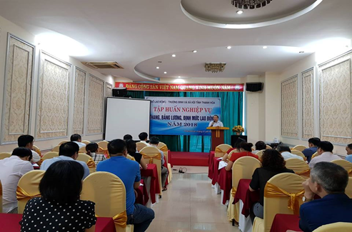 Từ ngày 26/7 đến ngày 3/8/2018, Sở Lao động – Thương binh và Xã hội đã tổ chức 03 lớp tập huấn nghiệp vụ hướng dẫn xây dựng thang, bảng lương, định mức lao động, nội quy lao động và thỏa ước lao động tập thể cho các doanh nghiệp. Tới dự và chỉ đạo các lớp tập huấn có đồng chí Lê Đình Tùng – Phó Giám đốc Sở LĐTBXH, các đồng chí lãnh đạo Phòng Lao động – Tiền lương – Bảo hiểm xã hội và gần 200 đại biểu là lãnh đạo các doanh nghiệp, cán bộ làm công tác lao động, tiền lương tham dự.